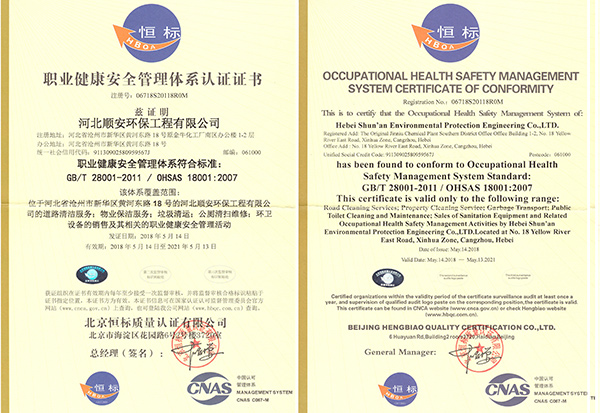 公司重視技術(shù)學(xué)習(xí),不斷強(qiáng)化內(nèi)部管理,取得了快速健康發(fā)展。我公司擁有清潔清掃企業(yè)國(guó) 家一級(jí)資質(zhì),通過(guò)了ISO國(guó)際管理體系認(rèn)證、國(guó) 家AAA信譽(yù)認(rèn)證、售后服務(wù)五星級(jí)認(rèn)證等多項(xiàng)認(rèn)證。是河北省環(huán)衛(wèi)協(xié)會(huì)理事單位.......